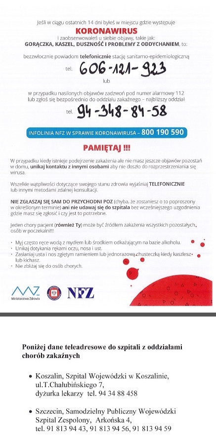 W załączeniu przedstawiamy ogłoszenie dotyczące Koronawirusa. Prosimy o zapoznanie się z jego treścią.
