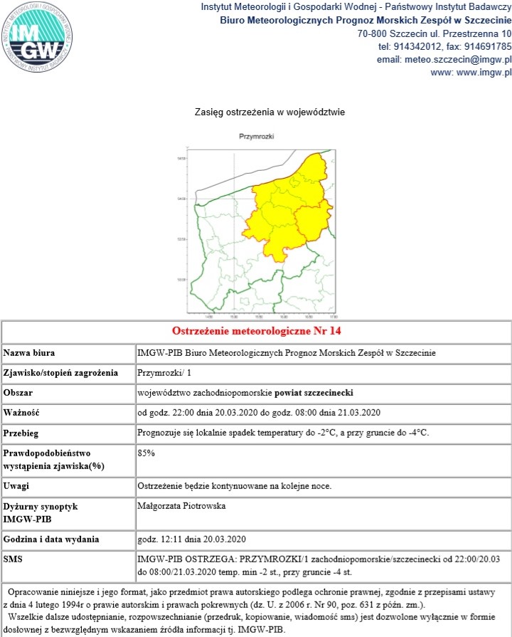 W załączyniku przedstawiamy informacje dotyczące spadku temperatury.