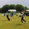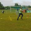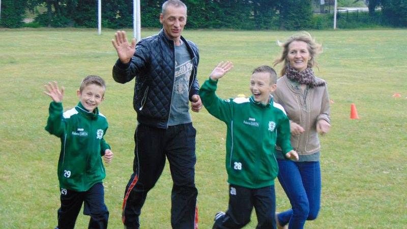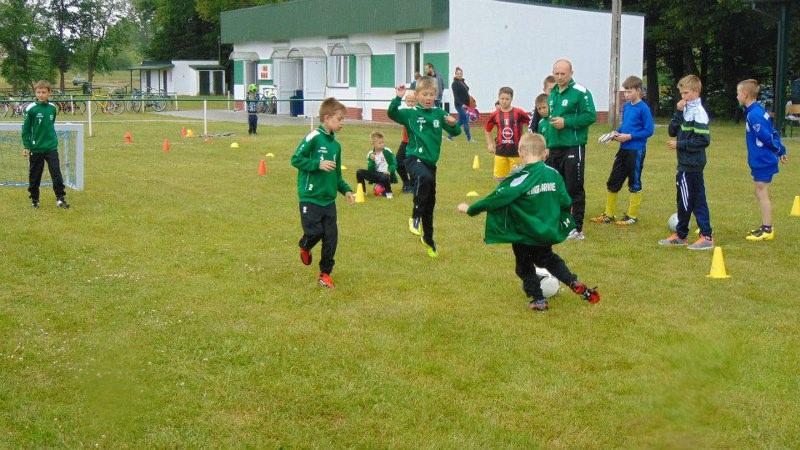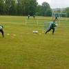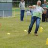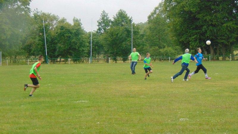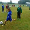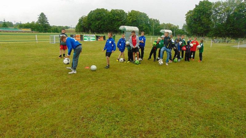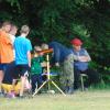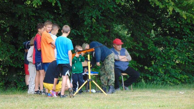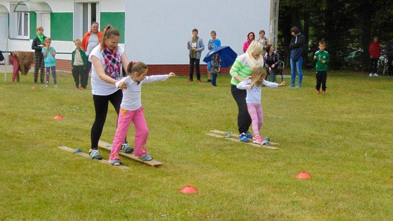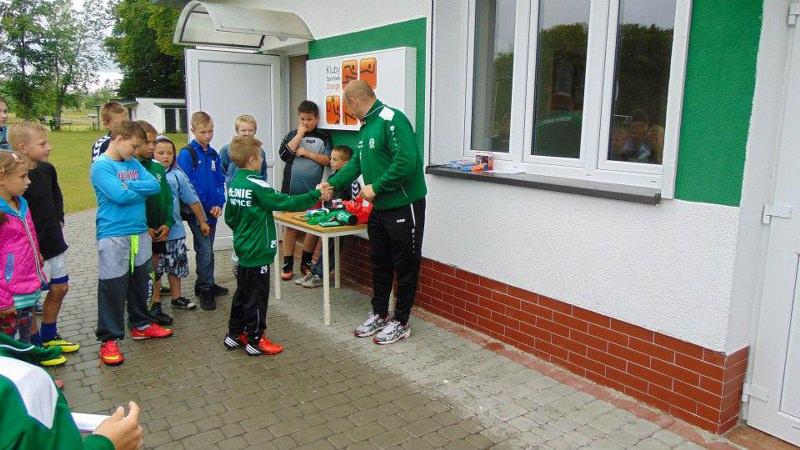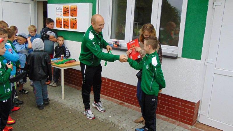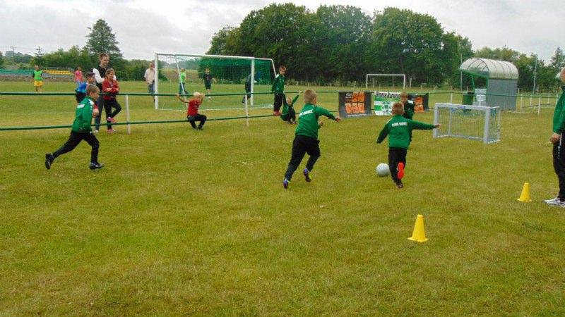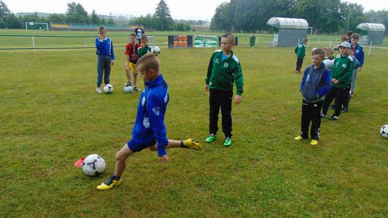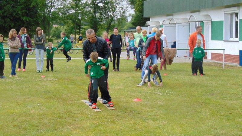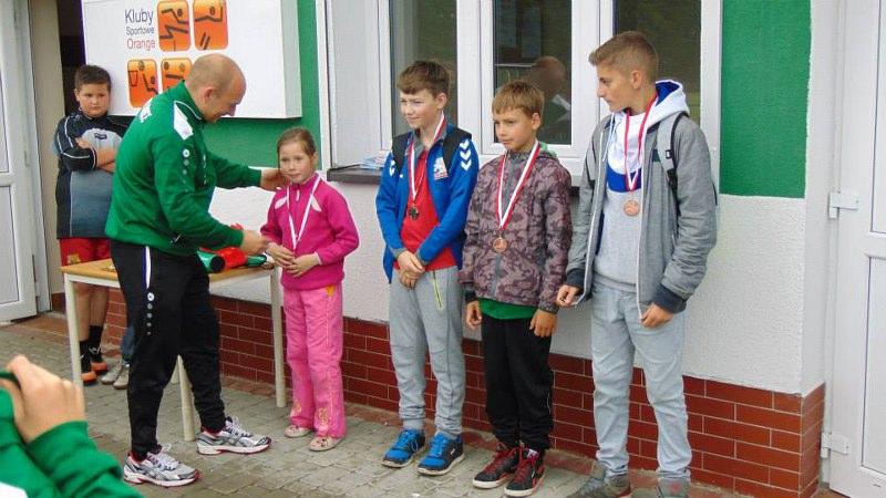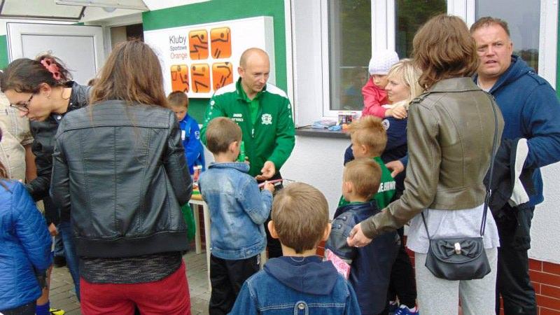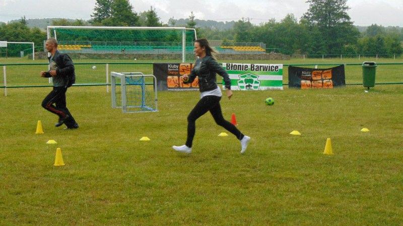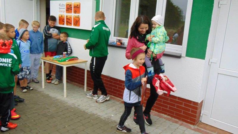 Ze względu na padający deszcz nie zostały rozłożone zamki dmuchane ( względy bezpieczeństwa). Udało się jedynie pod wiatą rozłożyć mały zamek do skakania. Rodzice i zawodnicy z cukru nie byli i mimo deszczyku bardzo chętnie brali udział w różnych konkurencjach sportowych przygotowanych przez trenerów Jacka Nogę i Grzegorza Tomaszewicza. Było bardzo dużo dobrej zabawy. Po wprowadzeniu - grze ożywiającej na początek rodzice konkurowali w wyścigach rzędów, na nartach dwu i trzy osobowych, wyścigu z gazetą na piersi ( przy dużej prędkości gazeta nie spadała) i slalom po piłki, która z drużyn przyniosła najszybciej wszystkie piłki na metę. W ramach Klubów Sportowych Orange odbył się również wyścig rodzinny. Aby można było wziąć w nim udział, rodzic musiał biec w parze z dzieckiem. Rozegrany został mecz zawodników wraz z rodzicami, konkurs dwójek, strzały w poprzeczkę, słupek i konkurs rzutów karnych. Dzięki uprzejmości i organizacji Andrzeja Zielonego można było wziąć udział w konkursach strzałów z wiatrówki. Pod wiatą cały czas dostępne były kiełbaski z grilla oraz kawa, herbata i ciasta upieczone przez rodziców. Na koniec uczestnicy otrzymali upominki ufundowane przez Klub Błonie Barwic oraz Urząd Miejski w Barwicach. Mamy nadzieję, że spędziliśmy wszyscy miło ten czas. Pogoda trochę nie dopisała i nie ze wszystkich przygotowanych atrakcji mogliśmy skorzystać, ale cieszymy się, że mimo wszystko rodzice bardzo chętnie brali udział w konkursach. Serdecznie dziękujemy za miłą zabawę, pomoc w organizacji a także cały sezon piłkarski. Podziękowanie również dla trenerów klubu Błonie Barwice oraz Ryśka Chojnackiego, Bogdana Jabłońskiego i gospodarza Rafała Zielenkiewicza.