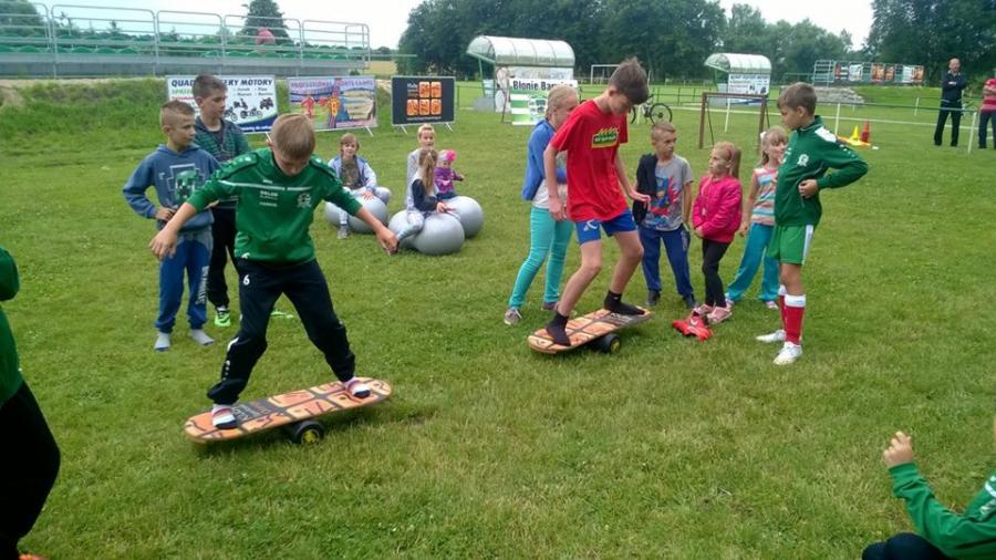 26 czerwca na Stadionie Miejskim w Barwicach odbył się Piknik Rodzinny. Rodzice upiekli ciasto, przygotowali poczęstunek, były kiełbaski z grilla, trenerzy Błoni Barwice przygotowali gry i zabawy. Pogoda również, mimo zachmurzonego nieba nie spłatała figla. Wszyscy uczestnicy miło i sportowo spędzili niedzielne popołudnie. Piknik otworzył prezes Błoni Barwice Grzegorz Tomaszewicz, który podsumował miniony sezon piłkarski grup młodzieżowych. Następnie licznie zgromadzeni kibice – rodzice mogli podziwiać w grze najmłodszych zawodników – rocznik 2008/2010. W rolę komentatorów wcielili się ich nieco starsi koledzy z drużyny. Na drugim boisku swoich sił próbowali strzelcy. Andrzej Zielony poprowadził konkurs strzałów z wiatrówki. Odbywały się one w dwóch kategoriach: młodzieżowej i rodziców. W tej pierwszej najlepszym okazał się Karol Drabiszczak, który wyprzedził Piotrka Pietrusiaka oraz Igora Nowackiego. W starszej pierwsze miejsce przypadło Agnieszce Politowskiej i Krzysztofowi Pilipiec. Jako, że klub Błonie uczestniczy w programie Klubów Sportowych Orange i cały czas podejmuje różnego rodzaju wyzwania chcieliśmy sprawdzić jak w tych konkurencjach wypadną rodzice. Do dyspozycji były deski tricboardowe oraz fasolki. Okazało się, że ich sprawność jest zadawalająca. Niestety w meczach piłki nożnej już tak dobrze nie było. Rodzice rozegrali trzy mecze, ale musieli w dwóch uznać wyższość młodych adeptów piłki nożnej. Wspaniałym przerywnikiem w zmaganiach sportowych był występ młodych tancerek, podopiecznych Natalii Kieling, działających przy Ośrodku Kultury i Turystyki w Barwicach. Podczas pikniku dostępne były zamki i zjeżdżalnie dmuchane, był przygotowany również kącik, gdzie można było udekorować swoje twarze. Na koniec wszyscy uczestnicy otrzymali upominki.
