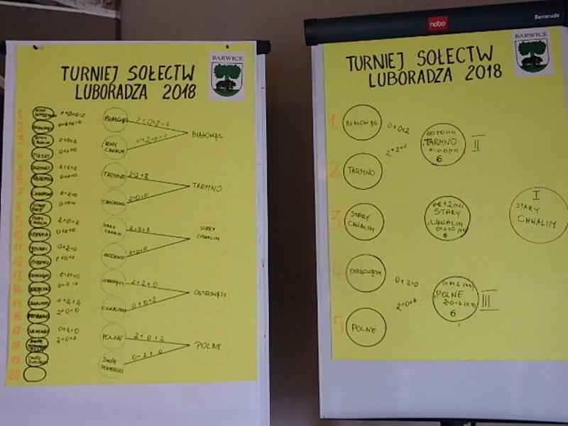 W sobotę 14 kwietnia 2018 odbył się Turniej Sołectw w tenisie stołowym. Gospodarzem Turnieju było sołectwo Nowe Koprzywno. Sponsorami imprezy byli : Ośrodek Kultury i Turystyki w Barwicach, Urząd Miejski w Barwicach, PPZ Przybkowo, Dwór Pomorski Luboradza oraz sołectwa. Udział wzięło 18 drużyn - razem ok 90 osób .Pierwsze miejsce i główną nagrodę- stół do ping-ponga, nagrody rzeczowe, upominki- zdobyło sołectwo Stary Chwalim. II miejsce zajęło sołectwo Tarmno - otrzymało bon o wartości 300 zł, nagrody rzeczowe i upominki, a III miejsce zdobyło sołectwo Polne, wygrywając bon o wartości 200zł, nagrody rzeczowe i upominki. Puchary za I, II, III miejsca wręczyli Burmistrz Barwic Zenon Maksalon, Przewodniczący Rady Miasta Edward Trejnis oraz Dyrektor Ośrodka Kultury i Turystyki w Barwicach Dorota Niedziela.
