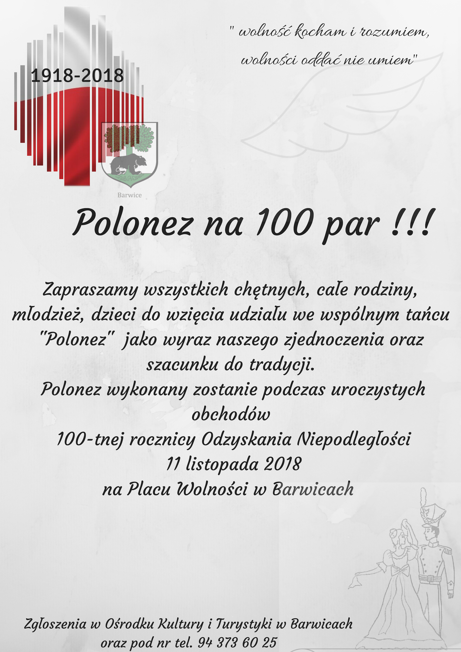 Szanowni Państwo, powoli zbliżamy się do obchodów 100-lecia odzyskania Niepodległości przez Polskę. Główne uroczystości odbędą się 11 listopada ale już dzisiaj zachęcamy do zaangażowania się w organizację tego wyjątkowego dnia.