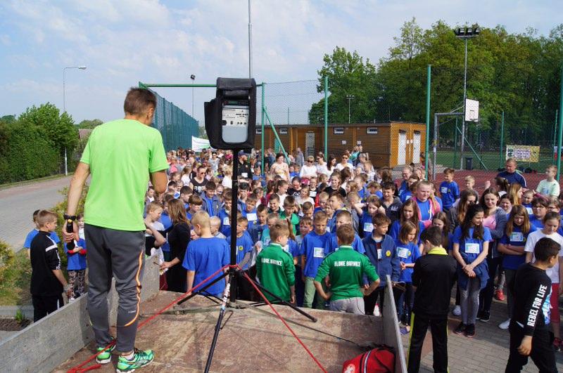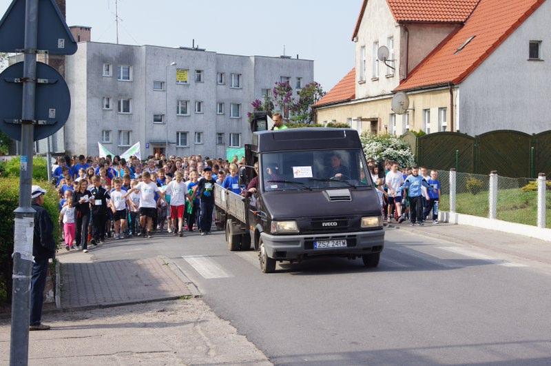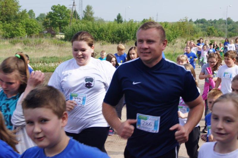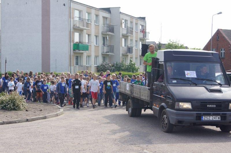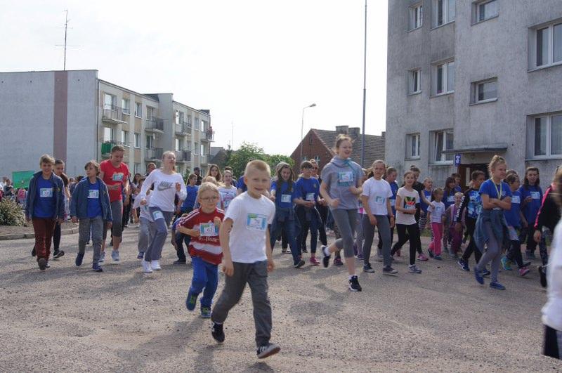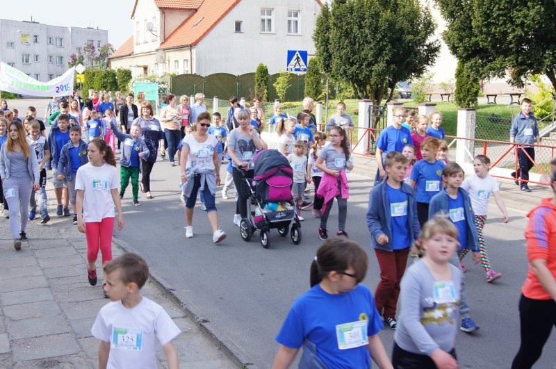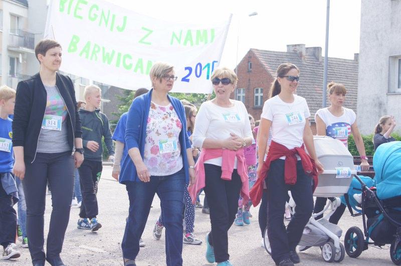 Z zaproszonych gości przywitaliśmy panią dyrektor Szkoły Podstawowej im. prof. W. Szafera w Barwicach Grażynę Kozłowską, która aktywnie wzięła udział w akcji. Referat Promocji i Rozwoju Gminy w Urzędzie Miejskim Barwice reprezentowany był aktywnie przez panie Ewę Nowosielską i Aleksandrę Kuśmierek. Po oficjalnym otwarciu akcji i rozgrzewce o godz. 9.15 wolnym tempem w rytm muzyki wszyscy uczestnicy ruszyli na trasę biegu. Biegnąc i maszerując ulicami miasta, uczestnicy pozdrawiali i zapraszali mieszkańców do udziału w akcji. Zwycięzcą biegu był każdy. Po ok. 30 minutach marszobieg zakończył się na boisku Orlik 2012. Najmłodszy uczestnik miał 3 miesiące a dwóch pozostałych niecały rok. Cała trójka była wspomagana przez mamy, które dzielnie biegły z wózkami. Najstarszym uczestnikiem była 66 letnia mieszkanka Barwic.