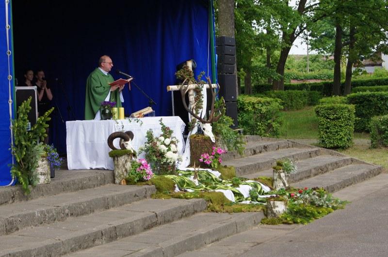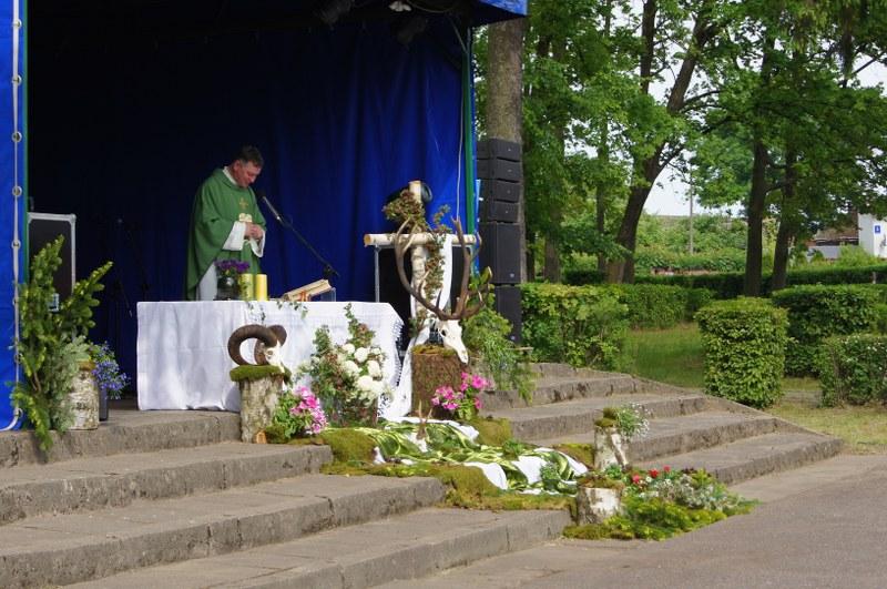Wyjątkowo imprezę plenerową, rozpoczęliśmy uroczystą Mszą Świętą w oprawie muzyki myśliwskiej.