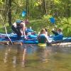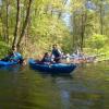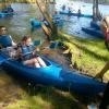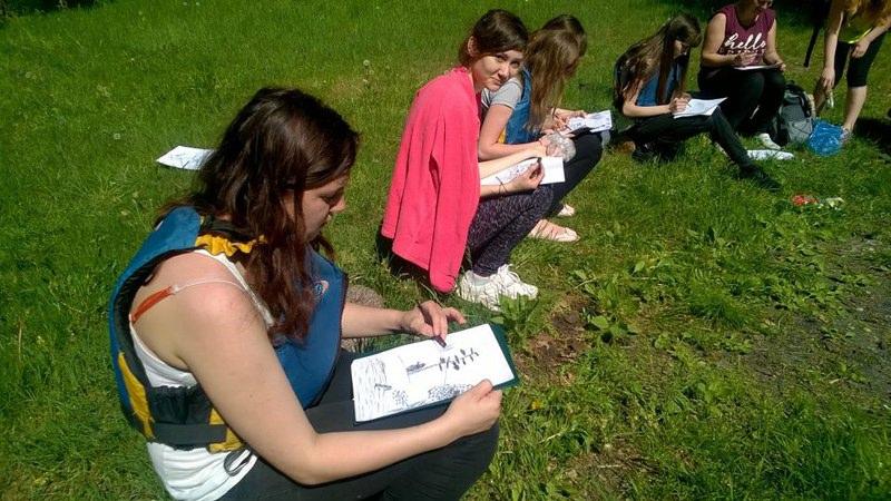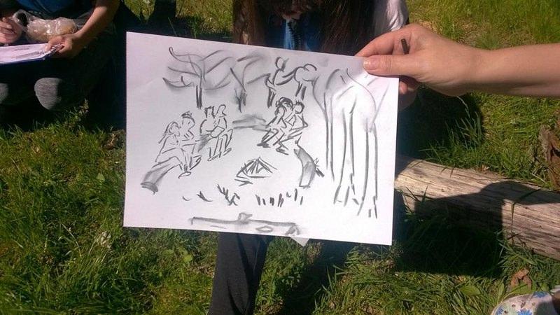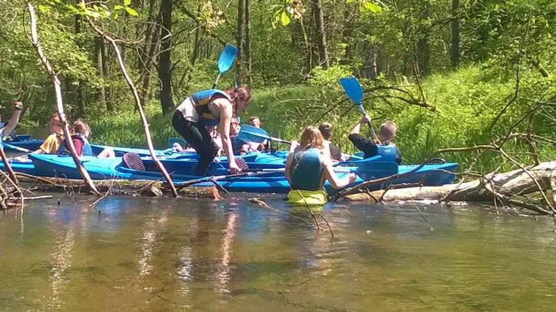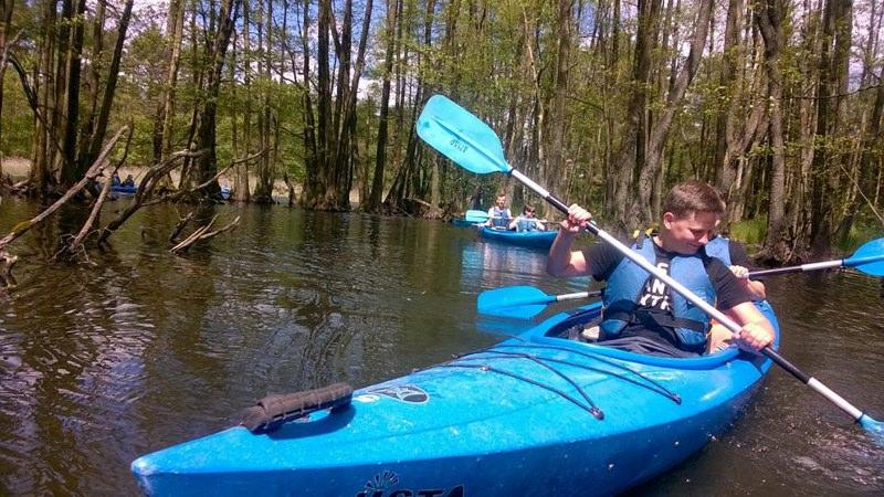 Część uczestników była na spływie po raz pierwszy, więc z pewnością był lęk przed nieznanym, a także pytanie jak się tym steruje. Pierwsze zetknięcie z wodą nie było jednak takie straszne, choć okoliczne szuwary trochę ucierpiały. Z każdą chwilą współpraca pomiędzy płynącymi układała się coraz lepiej i nawet udało się trzymać w miarę stabilny kurs. W trakcie spływu grupa zatrzymała się na polanie wśród drzew, gdzie odbyły się warsztaty artystyczno-plastyczne. Wiele atrakcji przyniosło malowanie węglem. Na koniec wszystkie prace zostały zebrane i wystawione będą na wystawie w szkole. Po plenerze artystycznym i posileniu się grupa ruszyła w dalszą drogę i tu już nie było tak spokojnie. Zwalone drzewa trochę utrudniły pływanie. Część musiała schodzić do wody, by przeciągnąć kajak, ale zabawa była naprawdę przednia. Na koniec przygotowano ognisko z kiełbaskami i wszyscy uśmiechnięci, zadowoleni bezpiecznie wrócili do domów snując plany na kolejny wyjazd.