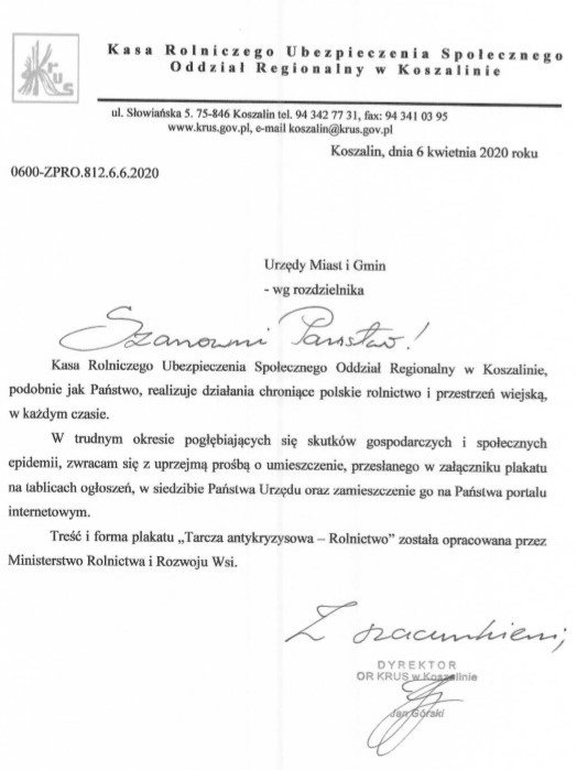 W załączniku przedstawiamy informacje dotyczące pomocy dla Rolników.