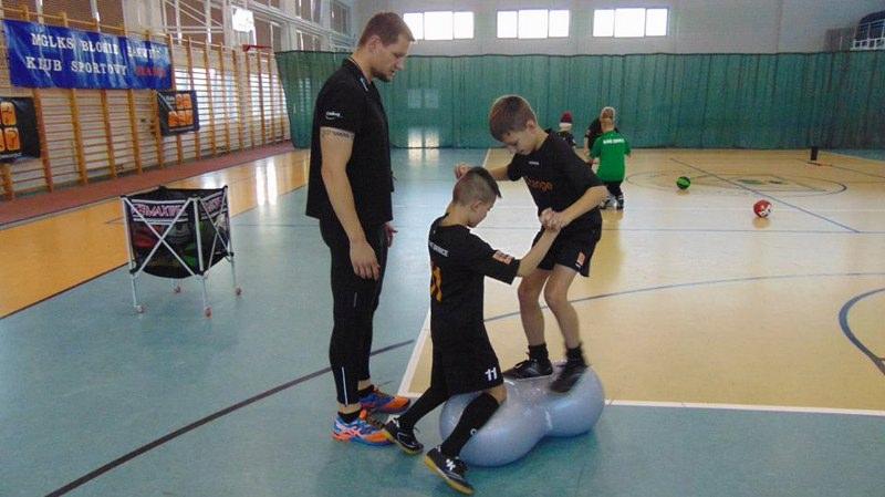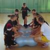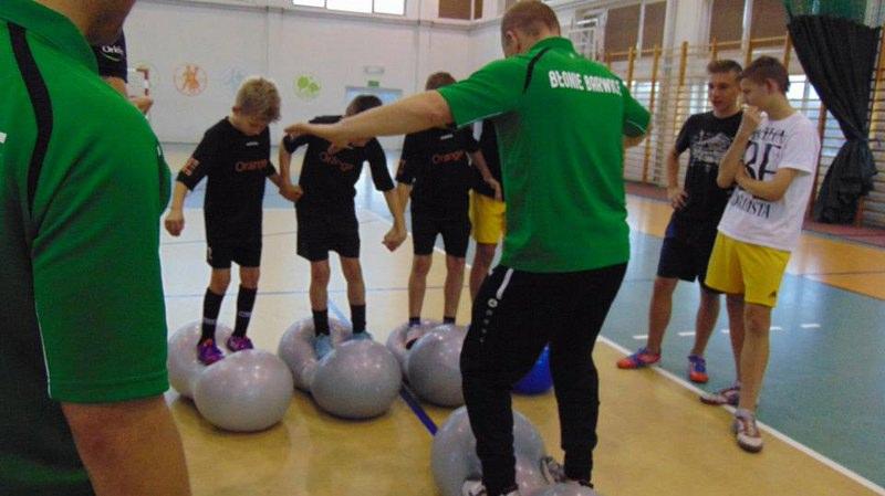 W pierwszym zawodnicy musieli wykonać rzuty do celu w specjalną tablicę z numeracją. Następnie trzy pary musiały wymieniać jednorazowo trzy piłki. Zadanie zostało uznane za poprawne po wykonaniu 10 wymian w prawo i 10 w lewo. Kolejnym ćwiczeniem było odbijanie przez minutę sposobem górnym lub dolnym piłki siatkowej. Utrudnieniem był fakt, że w środku wolny zawodnik musiał trzymać piłkę-fasolkę tak, by nie upadła. Zadanie wykonywały trzy pary. Jednym z prostszych ćwiczeń była wymiana różnych piłek: siatkowej, koszykowej, ręcznej i nożnych w specjalny dla danej dyscypliny sposób. Zawodnicy po poprawnym wykonaniu zmieniali się piłkami. Przedostatnim zadaniem była wymiana piłek koszykowych po koźle utrzymując się na deskach trickboardowych. To zadanie nie sprawiło najmniejszych problemów. Najciekawsze ćwiczenie natomiast było na koniec. Do tego zadania potrzebnych było pięć "fasolek". Wykonywało je 4 zawodników i trener. Zawodnicy mieli zdecydowanie łatwiej, ponieważ wykonywali stanie na piłkach trzymając się za ręce, natomiast trener, w tym przypadku Grzegorz Tomaszewicz po ustawieniu zawodników stawał na fasolkę na przeciwko nich. Tak jak na próbach był problem, tak w chwili decydującej udało się utrzymać 1 m 45 s. Podsumowując całe zadanie udało się zdobyć 410 punktów, co na chwilę obecną plasuje nas na drugiej pozycji w ogólnej punktacji Klubów Sportowych Orange. Warto dodać, że w marcu najlepszych 10 klubów jedzie na finał do Warszawy. Trzymamy zatem kciuki !!!