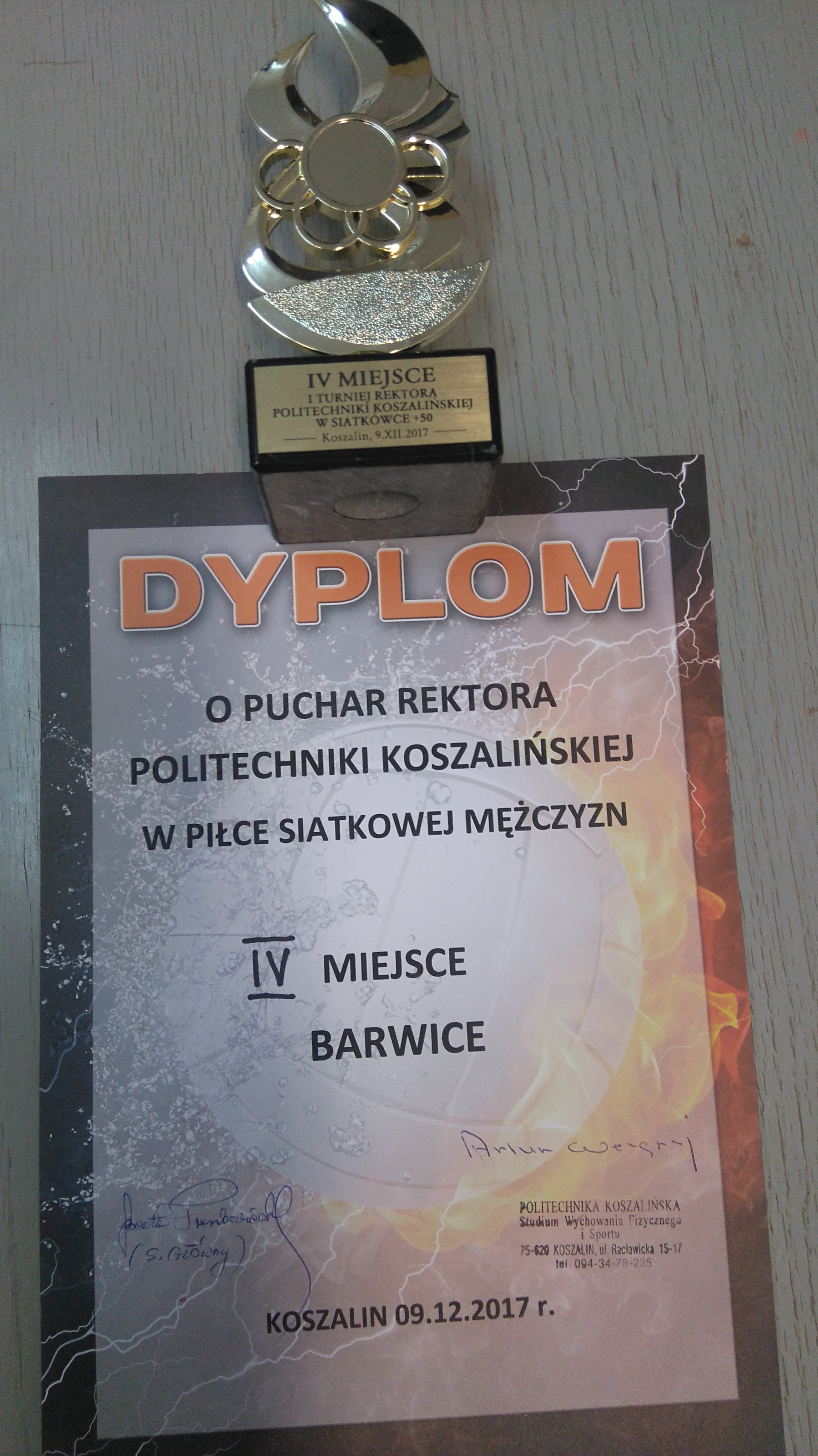 09 grudnia 2017 r. w Koszalinie odbył się turniej piłki siatkowej mężczyzn o puchar Rektora Politechniki Koszalińskiej. W zawodach uczestniczyły zespoły z regionu koszalińskiego. Zgodnie z regulaminem prawo gry w turnieju mieli zawodnicy w wieku powyżej 50 - tki. W turnieju uczestniczył zespół siatkarski z Barwic, który zajął w generalnej klasyfikacji piąte miejsce.