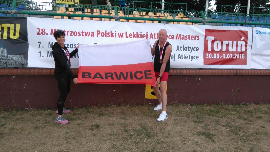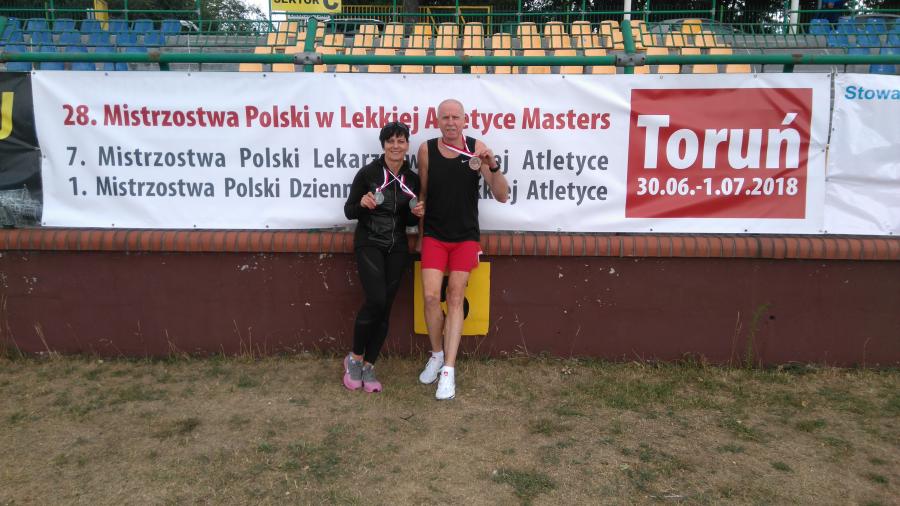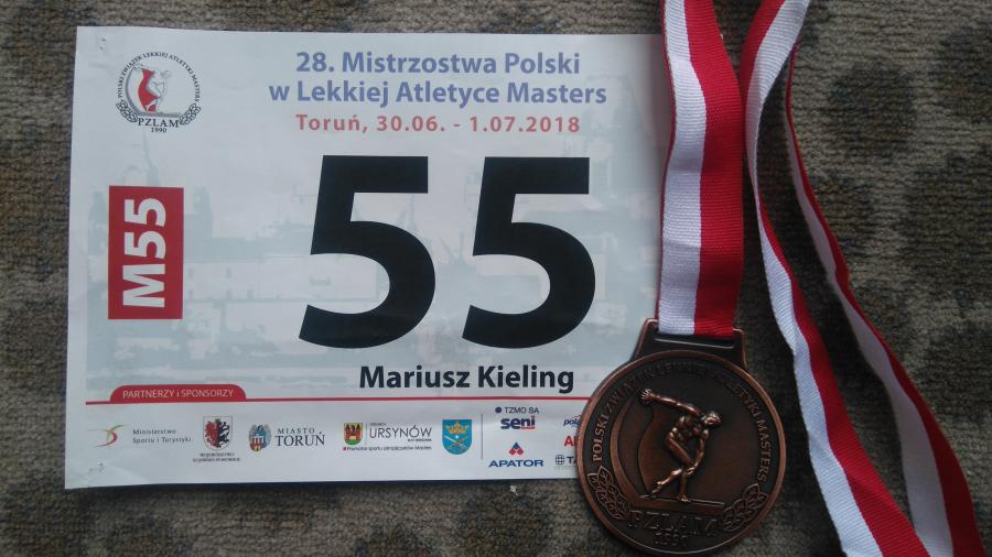 W dniach 30.06-01.07.2018 r. w Toruniu odbywały się 28 Mistrzostwa Polski Mastersów w lekkiej atletyce indywidualnej. Bardzo dobrze na tych zawodach zaprezentowali się Anna i Mariusz Kieling, którzy rywalizowali w kategorii wiekowej 55–latków. Anna Kieling startowała w czterech konkurencjach zdobywając w każdej medal. Mistrzostwo Polski wywalczyła w biegu na 80 metrów przez płotki, broniąc ubiegłoroczny tytuł mistrzyni w tej konkurencji. Medale srebrne zdobyła w rzucie dyskiem (1 kg) oraz w biegu na 100 m. i 200 m. Mariusz Kieling wystartował w biegu na 400 metrów przez płotki zdobywając brązowy medal. Tym samym obronił ubiegłoroczną trzecią pozycję w tej konkurencji biegowej.