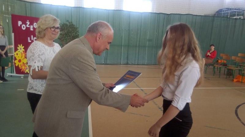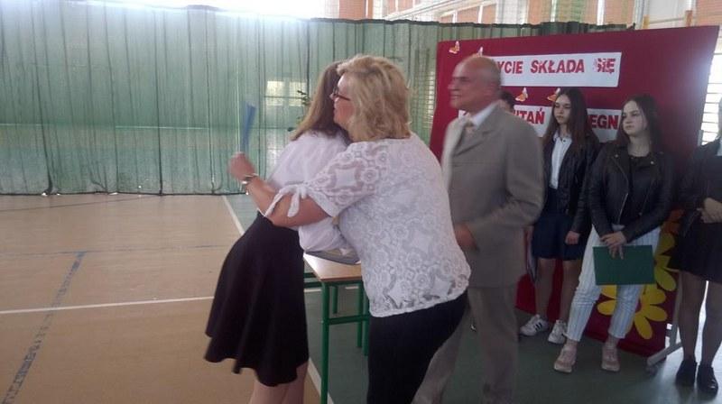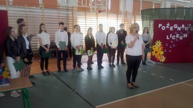Chwile takie zawsze są wzruszające, ale jedno się kończy, by mogło zacząć się nowe. Były kwiaty, przemówienia, podziękowania a następnie abiturienci otrzymali z rąk dyrektora Zespołu Szkół Wojciecha Kleszczonka oraz wychowawczyni Agnieszki Tomaszewicz świadectwa ukończenia LO, a wyróżnieni dodatkowo nagrody książkowe. Później opuszczając mury szkoły musieli przejść przez szpaler utworzony przez nauczycieli z symbolicznym "kopniakiem" na szczęście.
