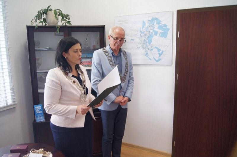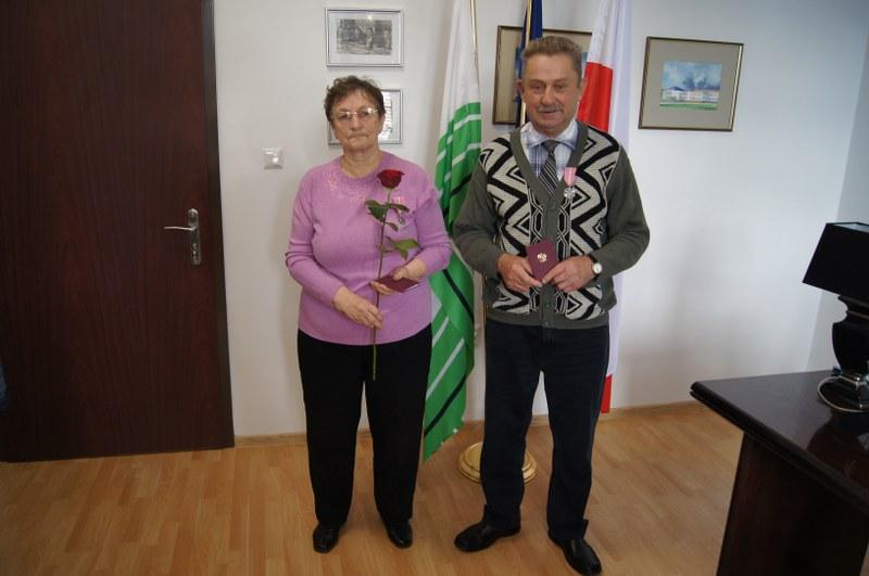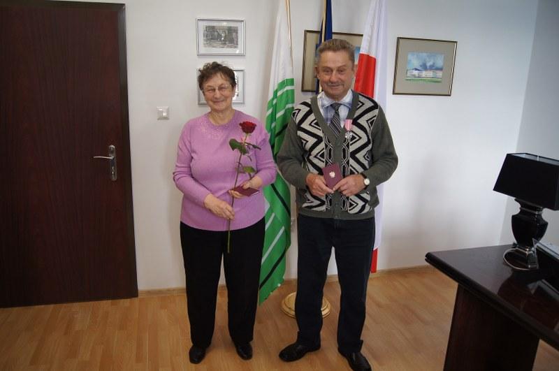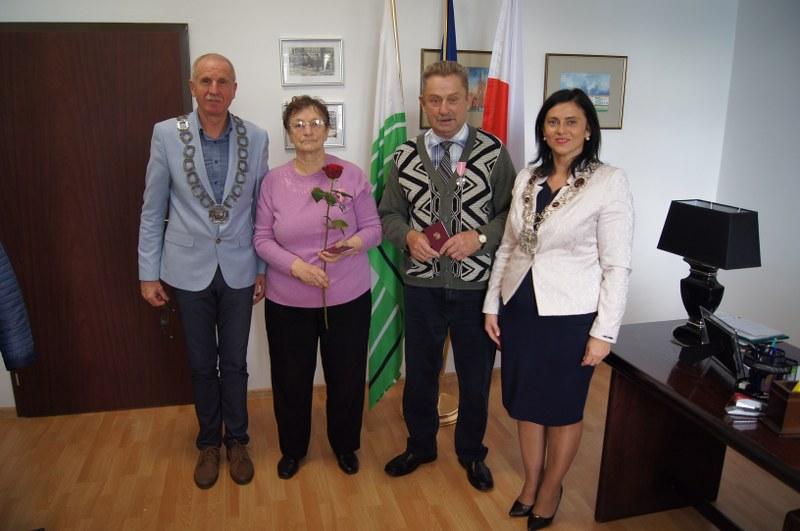 Burmistrz Mariusz Kieling z dumą i radością udekorował naszych Jubilatów Medalami . „(…)To wyróżnienie Waszego małżeństwa , a równocześnie wyraz nadziei, że nadal będziecie służyć przykładem i doświadczeniem dla przyszłych pokoleń.”- powiedział Burmistrz. Wspomniał również o uroczystości, która miała miejsce w Urzędzie Stanu Cywilnego w Barwicach 6 lipca 2019r. Wspólnie z kierownikiem Urzędu Stanu Cywilnego Renatą Trembowelską przy tej okazji złożyli najserdeczniejsze gratulacje i życzenia.