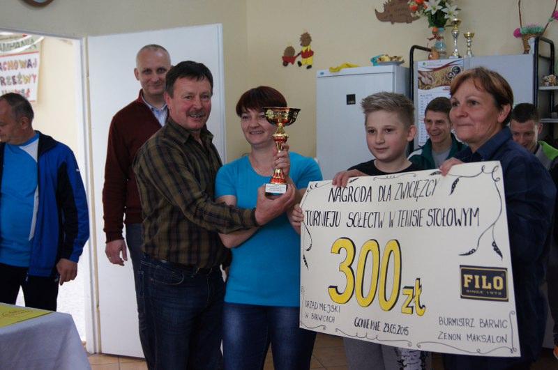 Zwycięstwo odniosła drużyna reprezentująca sołectwo Nowe Koprzywno otrzymując Puchar Burmistrza Barwic oraz 500 zł nagrody.