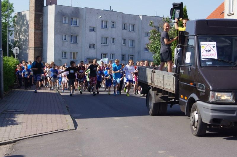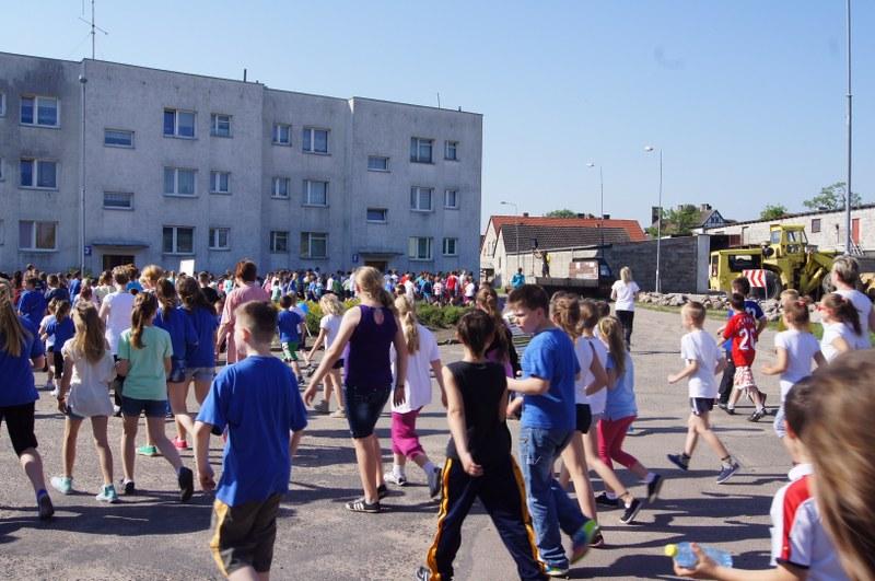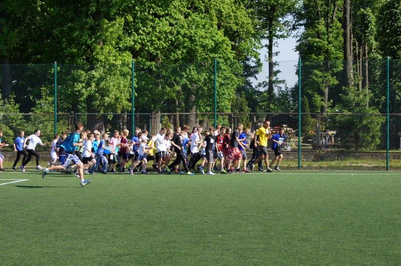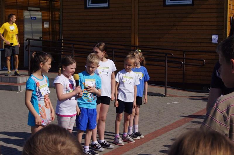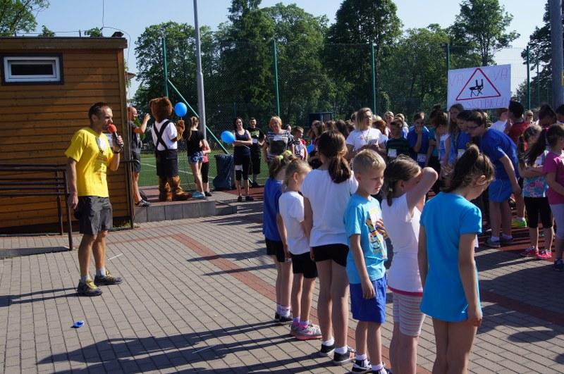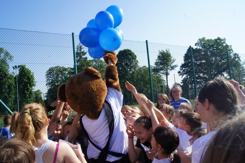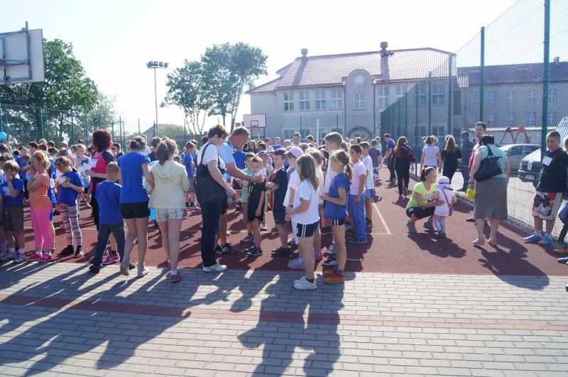 Następnie odbyło się losowanie ok. 100 nagród (koszulki, kubki, smycze, itp.). Każda klasa i szkoła uczestnicząca w biegu otrzyma pamiątkowy dyplom z logo akcji. Serdeczne podziękowania za ufundowanie nagród przez Urząd Miejski w Barwicach i firmę FILOWIAT – sklepy FILO w Barwicach.