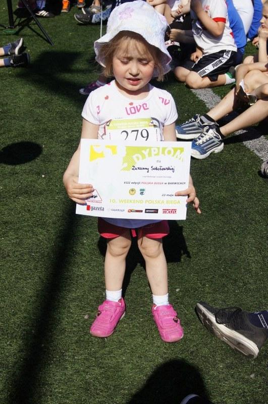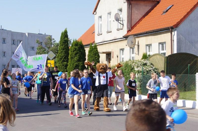 Z zaproszonych gości przywitaliśmy panią Wicedyrektor Szkoły Podstawowej im. prof. Władysława Szafera w Barwicach Małgorzatę Krawczyk - Figlarz oraz panią Aleksandrę Kuśmierek z Referatu Promocji i Rozwoju Gminy Barwice w Urzędzie Miejskim, które aktywnie uczestniczyły w akcji. Po oficjalnym otwarciu akcji o godz. 9.15 wolnym tempem w rytm muzyki wszyscy uczestników ruszyli na trasę biegu. Biegnąc ulicami miasta, uczestnicy pozdrawiali i zapraszali mieszkańców do udziału w akcji. Zwycięzcą biegu był każdy – mały i duży, sportowiec i amator. Po ok. 20 minut, bieg zakończył się na boisku Orlik 2012. Najmłodszym uczestnikiem była Marcysia, która ma 2 lata i 5 miesięcy a najstarszym była pani Marysia – pedagog ze Szkoły Podstawowej w Barwicach.