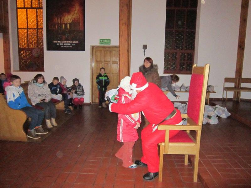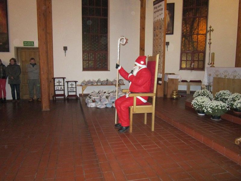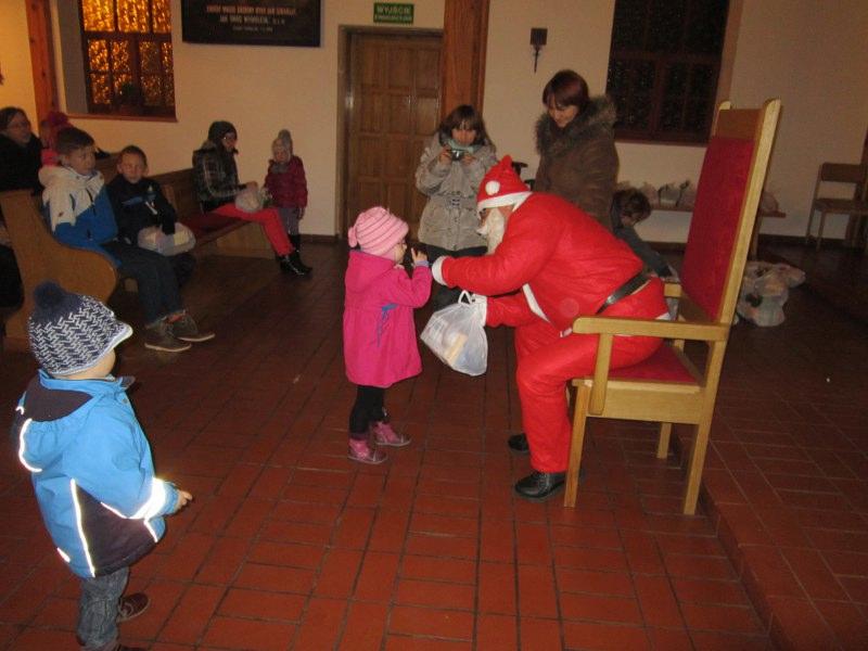 Rodzice wraz z dziećmi najpierw uczestniczyli we mszy św. a następnie gość z Laponii rozdał prezenty.