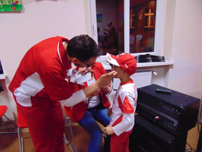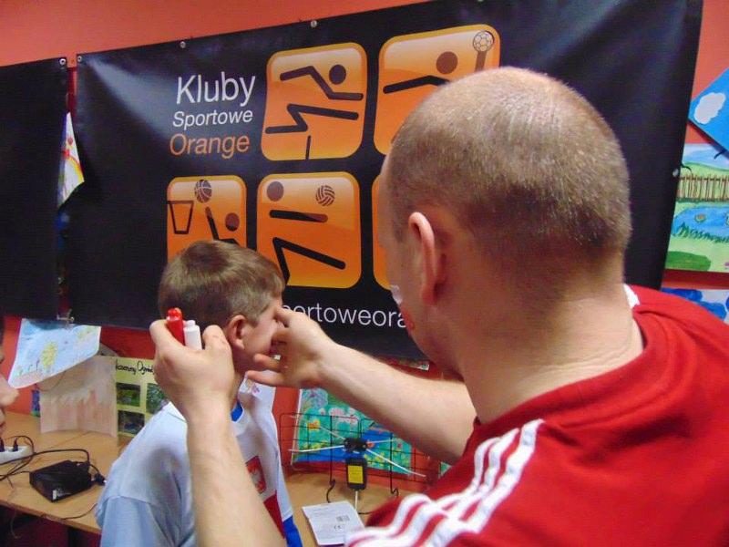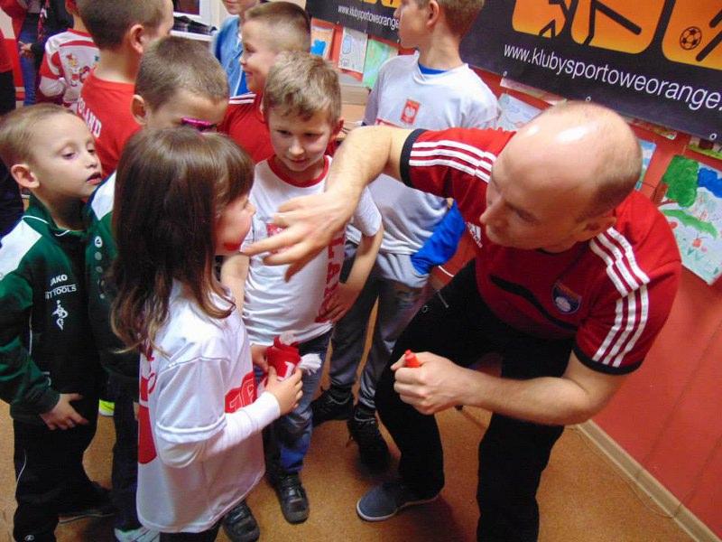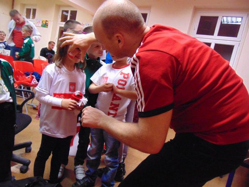 Wszyscy przygotowani, z flagami, szalikami, czapkami. Na miejscu również Prezes klubu Grzegorz Tomaszewicz oraz trenerzy malowali twarze.