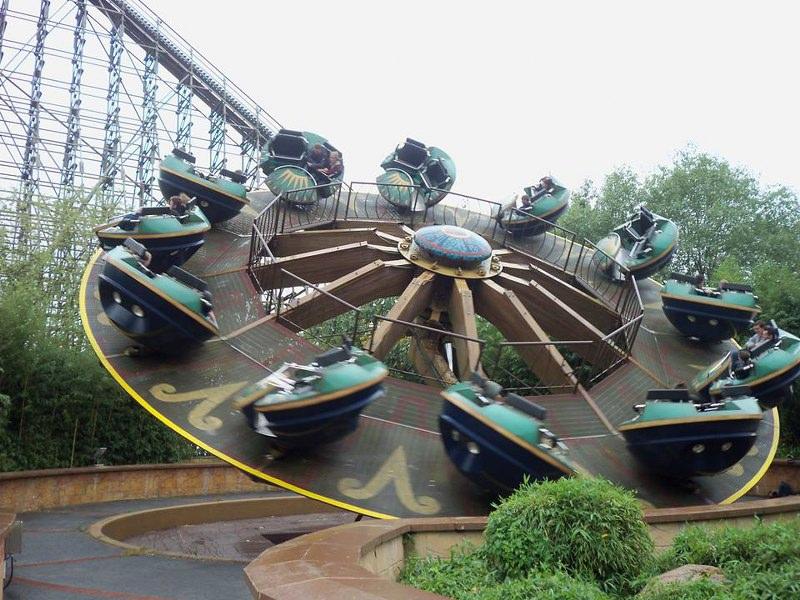 Flug der Dämonen(Lot Demona- kolejka typu wing coaster), w której mkniemy z prędkością 100