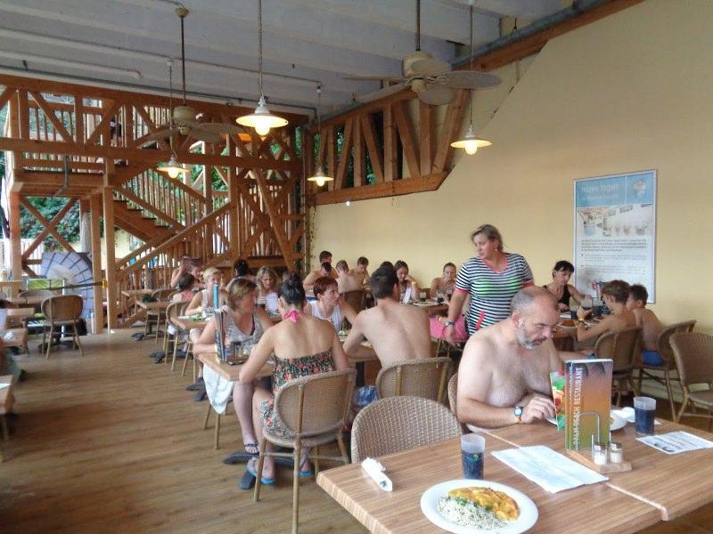 albo na jednej z czterech zjeżdżalni , z których jedna - „turbo” rozpędzała do 70 km na godzinę.