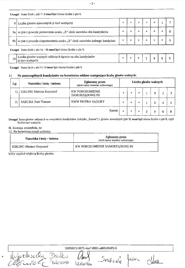 W załaczeniu protokoły Miejskiej Komisji Wyborczej