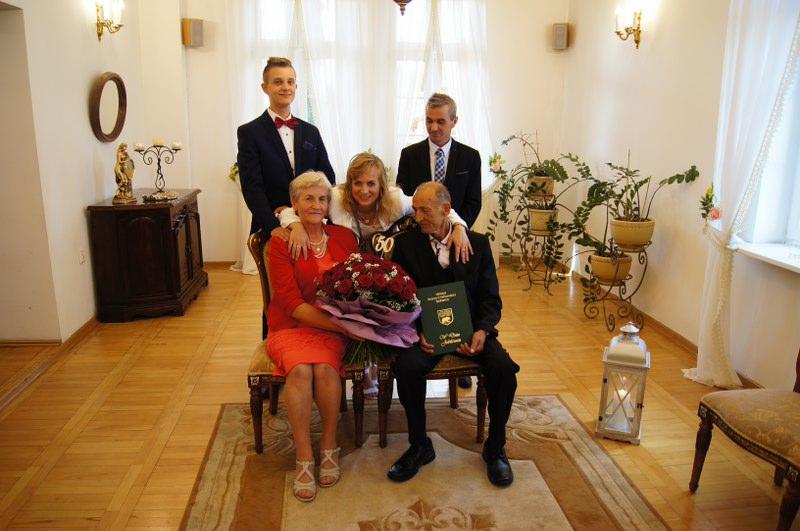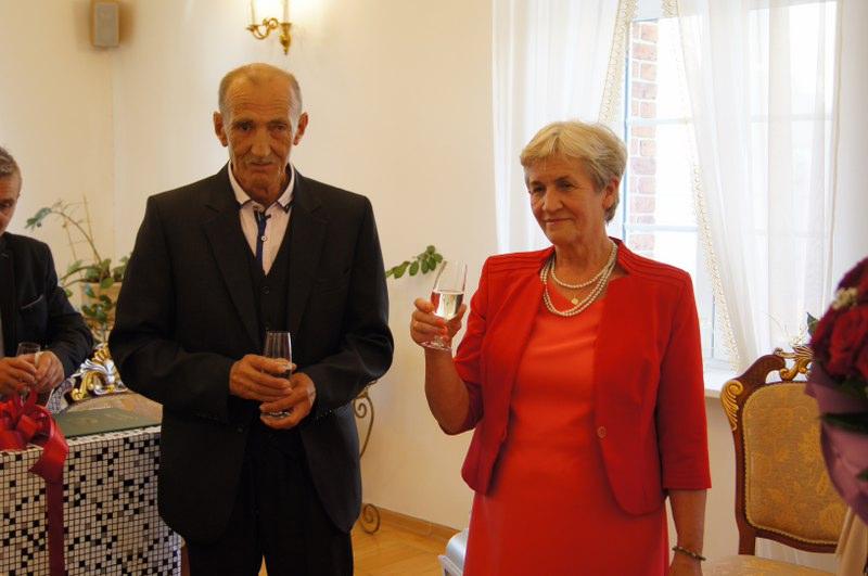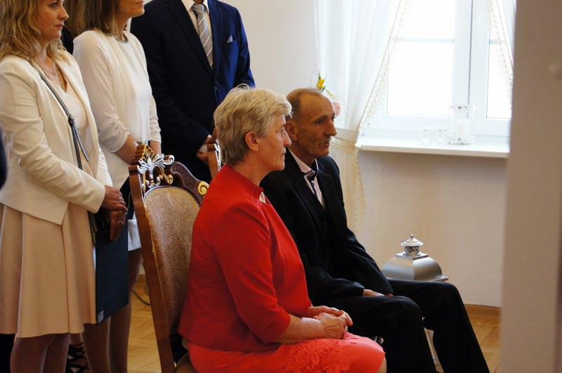 Nasi zacnie goście przybyli do urzędu wraz ze swoimi bliskimi, by uroczyście podziękować sobie za wspólnie przeżyte lata. Przy wspomnieniach pierwszego zauroczenia, dnia samego ślubu i kolejnych lat wspólnego życia był uśmiech, łzy wzruszenia i blask oczu, który pozostał niezmieniony przez te wszystkie lata. Swoim pierwszym w tym dniu tańcem zachęcili nasi jubilaci gości do wspólnego śpiewu i pląsania.