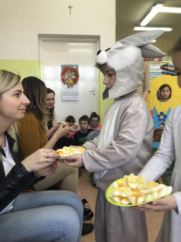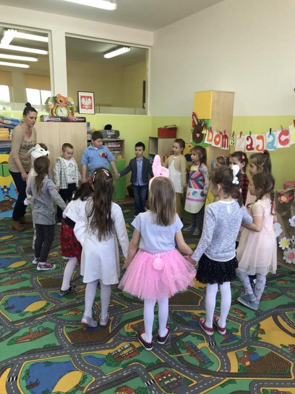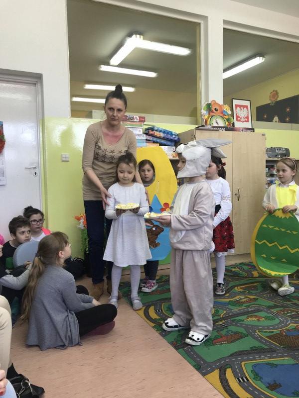 Sześciolatki z oddziału przedszkolnego przy Szkole Podstawowej w Barwicach wraz ze swoją wychowawczynią Angeliką Gadzinowską przygotowały uroczystość z okazji zbliżających się Świąt Wielkanocnych. Zaproszeni goście zostali zabrani do świata chorego wielkanocnego zająca, któremu usiłowała pomóc grupa przyjaciół. W ten lekki i przystępny sposób dzieci pokazały, że świąteczna tradycja jest im dobrze znana. Życzenia młodym artystom osobiście złożyła Dyrektor Małgorzata Krawczyk Figlarz, nie zapominając o słodkich upominkach. Na koniec wszyscy zostali poczęstowani symbolicznym jajkiem oraz zostali zaproszeni na słodki poczęstunek.